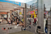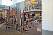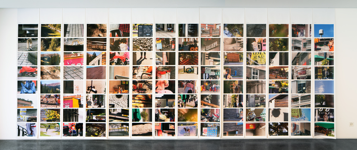 Im Ausstellungsraum des ersten Stock collidieren diese beiden Dorfplatz-Panoramas zu einer gemeinsamen Struktur. Im Ergeschoss sind diese wieder in Ihre Teile zerlegt präsentiert, als eine Auswahl der intentionslosen Einzelbilder, die dem Verfahren zugrunde liegen.